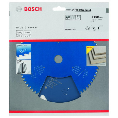 Emballage: 1 Marque: Bosch Référence: 2608644125 EAN: 3165140796910 Description: Lame de Scie Circulaire Expert pour Fiber Cement 190 x 30 x 2,2 mm, 4D