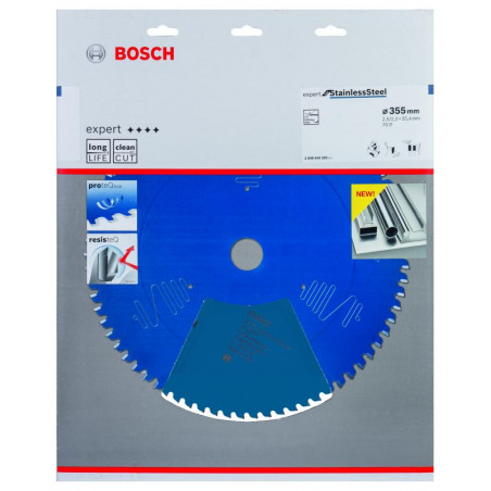 Emballage: 1 Marque: Bosch Référence: 2608644283 EAN: 3165140839976 Description: Lame de Scie Circulaire Expert pour Stainless Steel, 355 x 25,4 x 2,5 mm, 70D