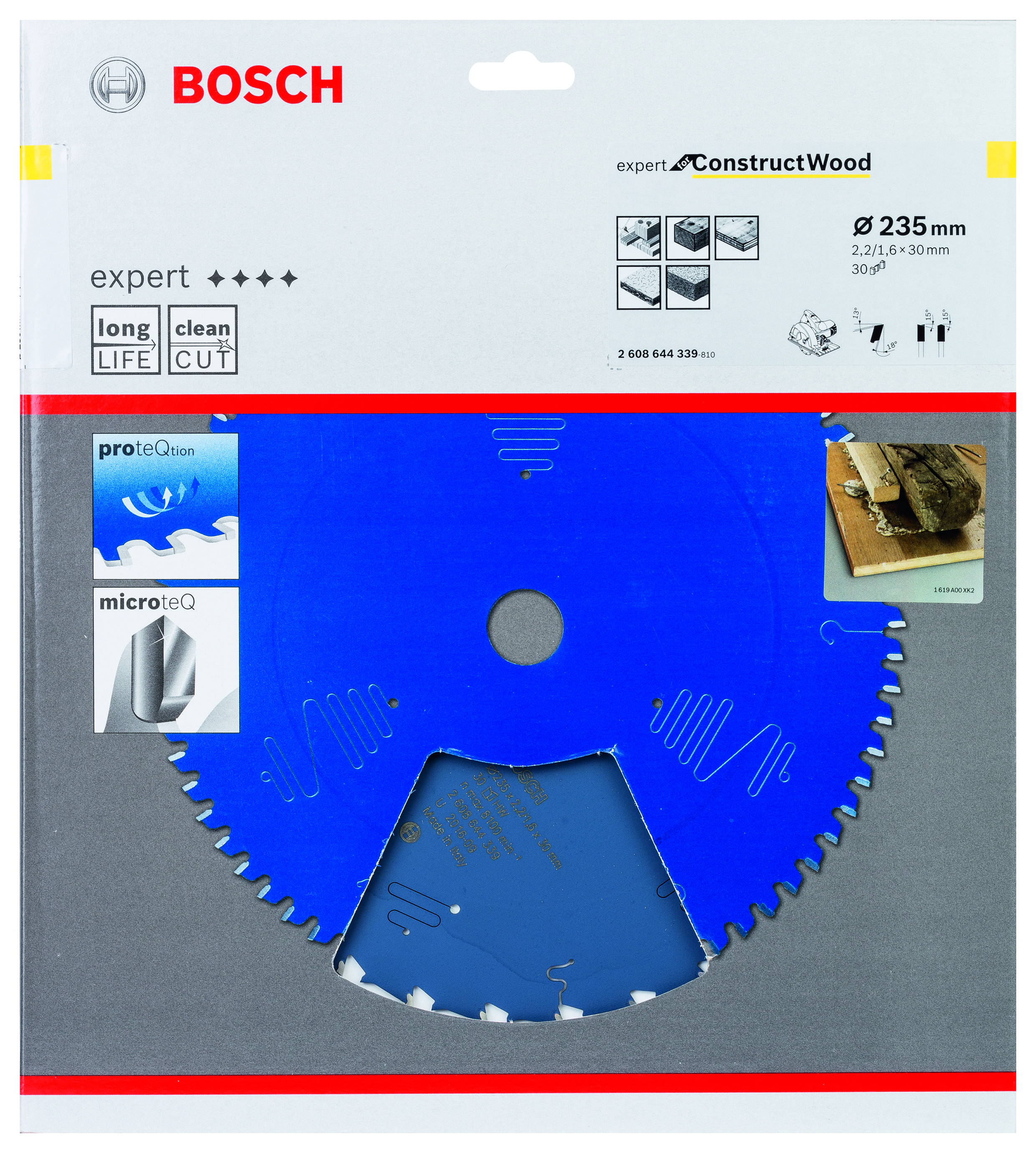 Emballage: 1 Marque: Bosch Référence: 2608644339 EAN: 3165140880893 Description: Lame de Scie Circulaire Expert pour Construct Wood, 235 x 30 x 2,5 mm, 30D