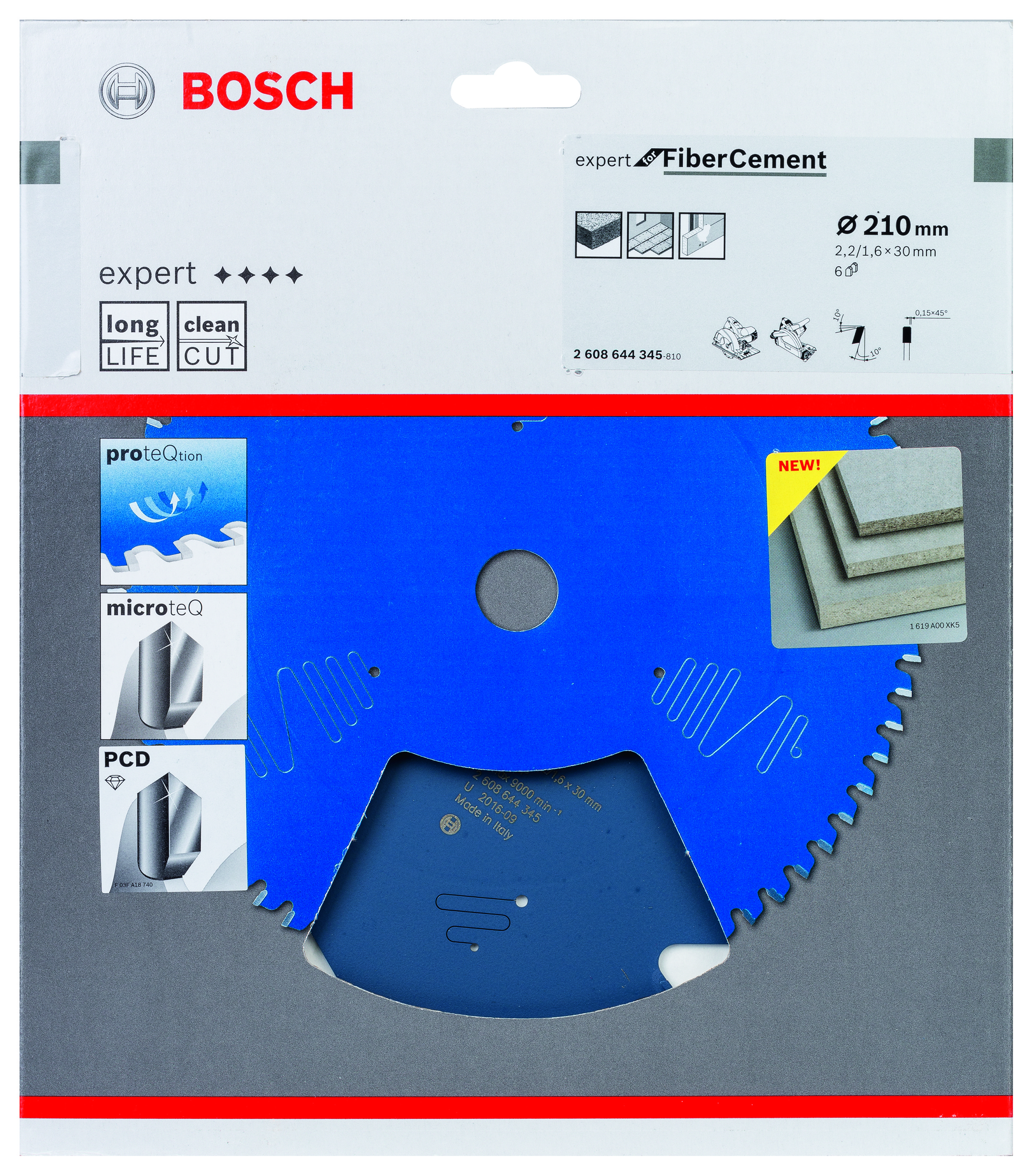 Emballage: 1 Marque: Bosch Référence: 2608644345 EAN: 3165140880954 Description: Lame de Scie Circulaire Expert pour Fire Cement, 210 x 30 x 2,2 mm, 6D