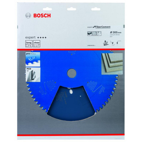 Emballage: 1 Marque: Bosch Référence: 2608644353 EAN: 3165140881036 Description: Lame de Scie Circulaire Expert pour Fire Cement, 305 x 30 x 2,4 mm, 8D