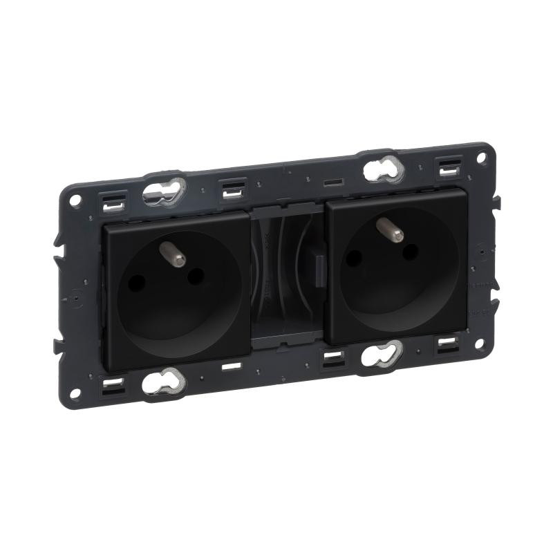 Description: Valena Next prise 2x2P+T précâblée appareil complet noir à vis