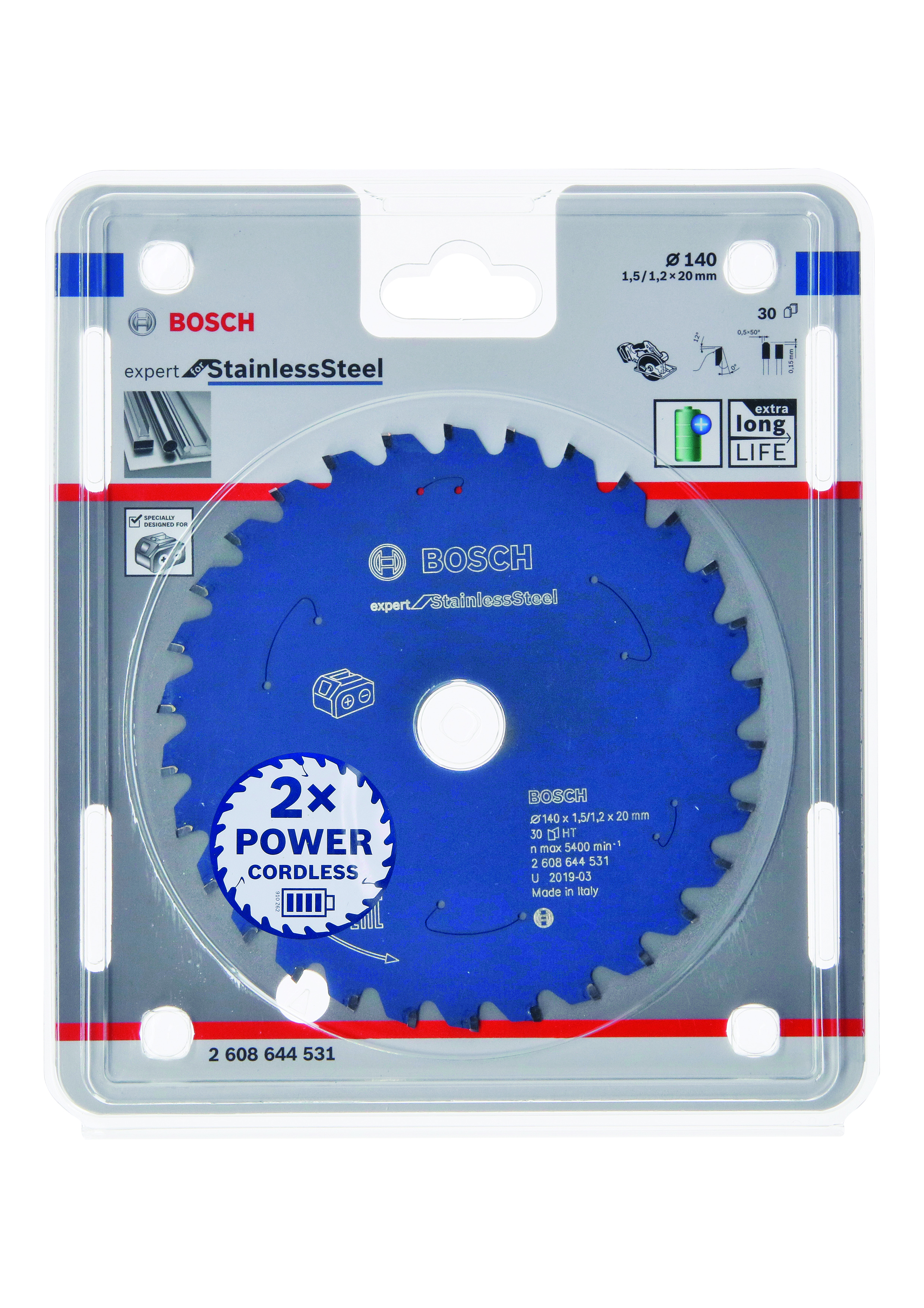Emballage: 1Marque: BoschRéférence: 2608644531EAN: 3165140957618Description: Lame pour scie circulaire ACCU Expert for Stainless Steel 140x20x1.5/1.2x30T