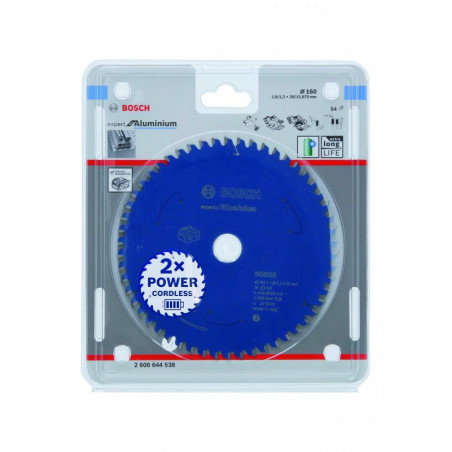Emballage: 1Marque: BoschRéférence: 2608644538EAN: 3165140957687Description: Lame pour scie circulaire ACCU Expert for Aluminium 160x20x1.8/1.3x54T