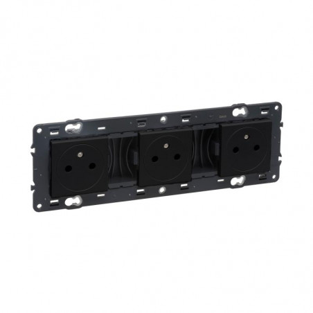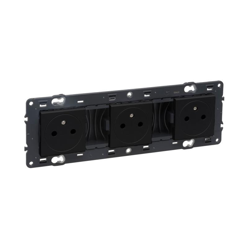 Description: Valena Next prise 3x2P+T précâblée aff appareil complet noir à vis
