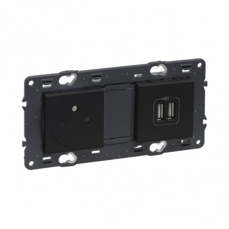 Val prise 2P+T+2xUSB affl. app.complet noir à vis / Non stocké! / Emballage: 1