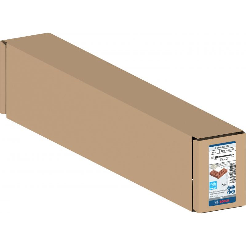 Emballage: 10Marque: BoschRéférence: 2608690127EAN: 3165140462747Description: 10 burins plats PRO SDS max-4C 25x280 mm