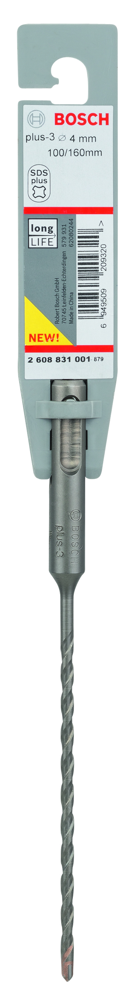Emballage: 1Marque: BoschRéférence: 2608831001EAN: 6949509209320Description: Foret SDS-Plus-3, pour perforateur 4 x 100 x 160 mm