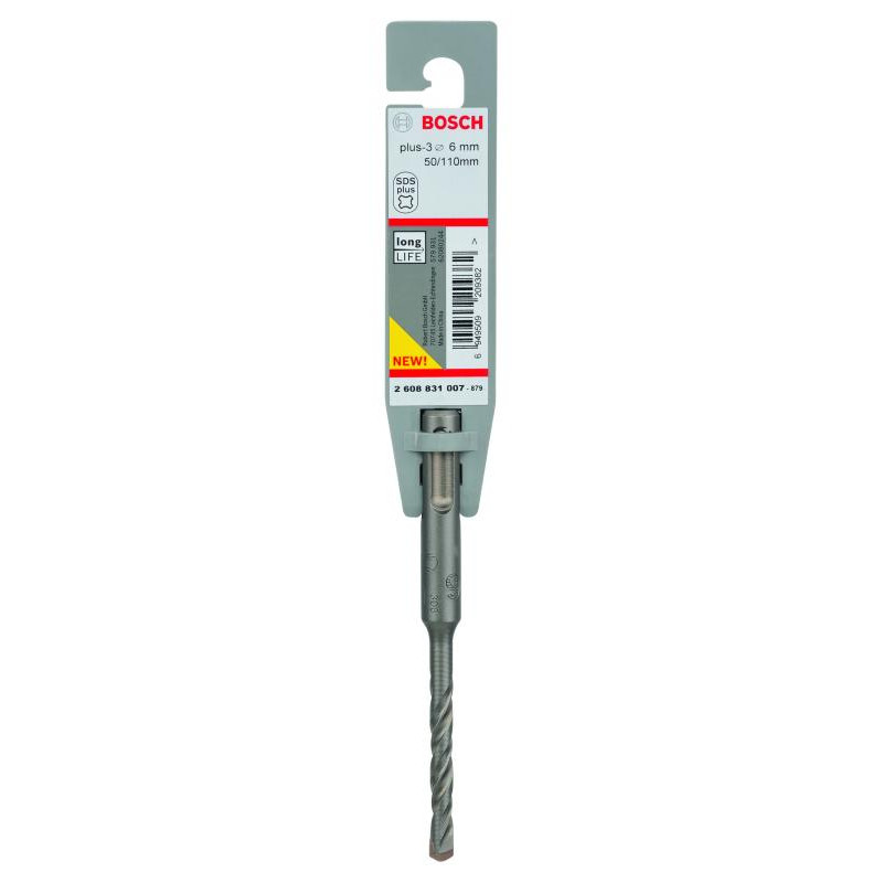 Emballage: 1Marque: BoschRéférence: 2608831007EAN: 6949509209382Description: Foret SDS-Plus-3, pour perforateur 6 x 50 x 110 mm