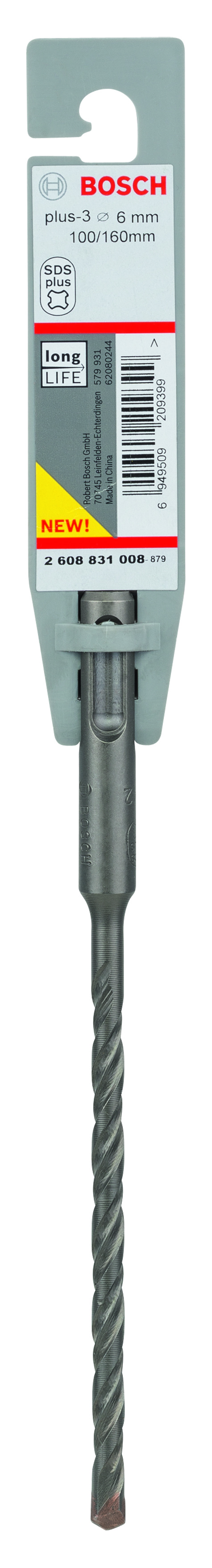 Foret SDS-Plus-3, pour perforateur 6 x 100 x 160 mm