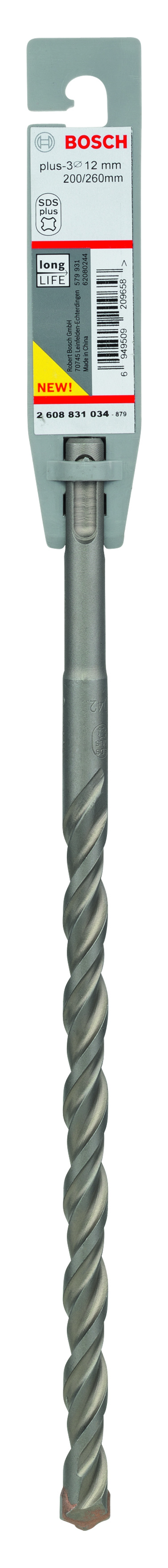 Emballage: 1Marque: BoschRéférence: 2608831034EAN: 6949509209658Description: Foret SDS-Plus-3, pour perforateur 12 x 200 x 260 mm