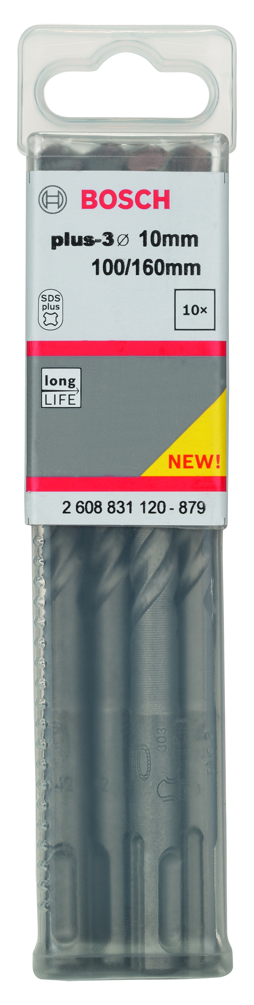 Emballage: 10Marque: BoschRéférence: 2608831120EAN: 6949509210128Description: Foret SDS-Plus-3, pour perforateur 10 x 100 x 160 mm 10x