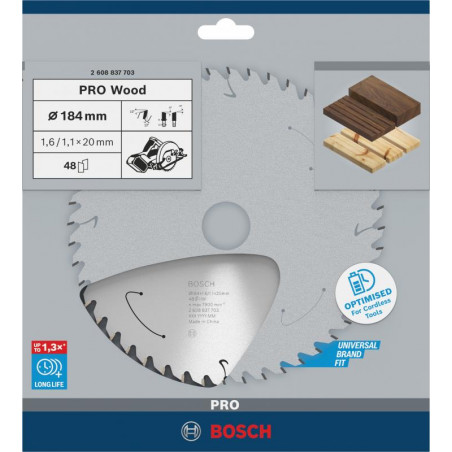 Lame scie Circulaire Sans-fil PRO Bois 184x20x1,6mm ; 48D