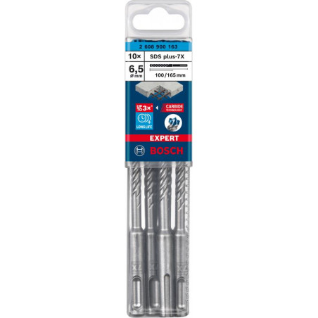 Emballage: 10Marque: BoschRéférence: 2608900163EAN: 4059952532363Description: EXPERT Foret SDS plus-7X 10st 6.5x100x165mm