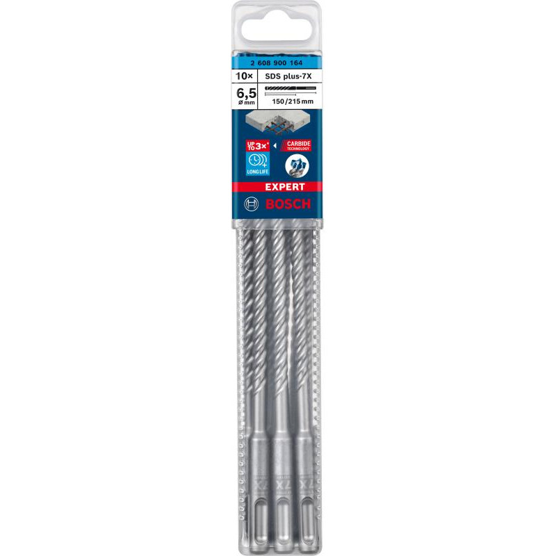 Emballage: 10Marque: BoschRéférence: 2608900164EAN: 4059952532370Description: EXPERT Foret SDS plus-7X 10st 6.5x150x215mm