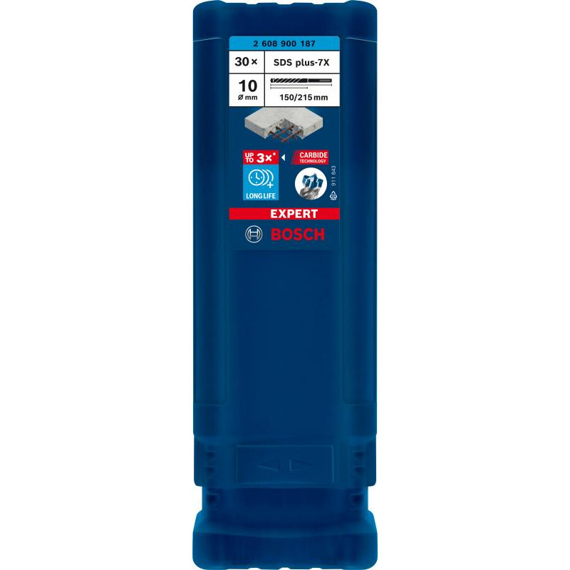 Emballage: 30Marque: BoschRéférence: 2608900187EAN: 4059952532608Description: EXPERT Foret SDS plus-7X 30st 10x150x215mm