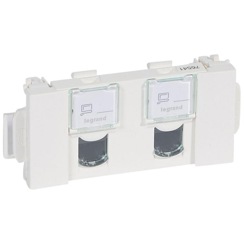 Emballage: 5 - 50 Marque: LegrandRéférence: 076541EAN: 3245060765415Description: Mosaic 2xRJ 45 cat 5e UTP clip DLP clippage direct Mosaic
