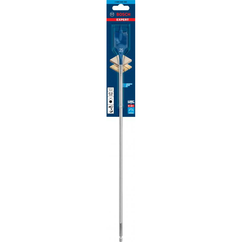 Emballage: 1Marque: BoschRéférence: 2608900350EAN: 4059952534244Description: EXPERT Mèche plate Self Cut Speed, six pans 25 x 400 mm