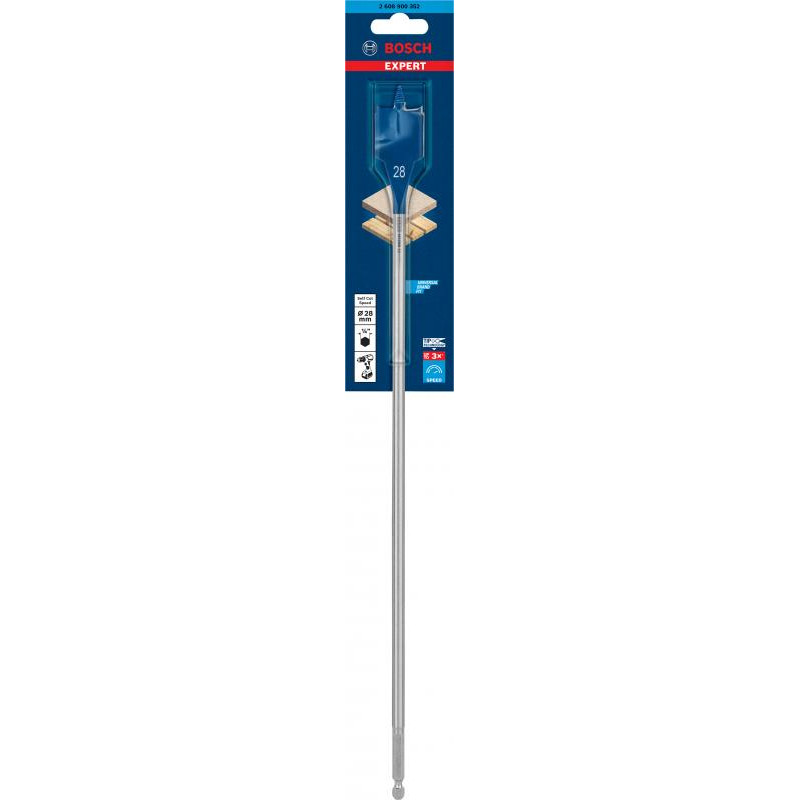 Emballage: 1Marque: BoschRéférence: 2608900352EAN: 4059952534268Description: EXPERT Mèche plate Self Cut Speed, six pans 28 x 400 mm