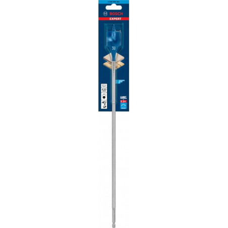 Emballage: 1Marque: BoschRéférence: 2608900353EAN: 4059952534275Description: EXPERT Mèche plate Self Cut Speed, six pans 30 x 400 mm