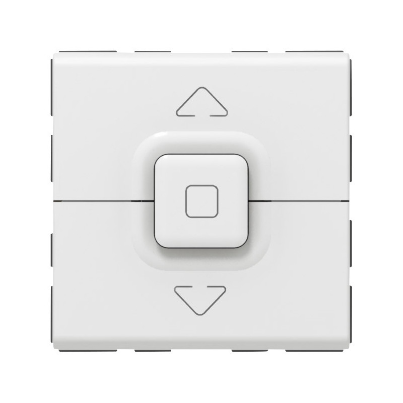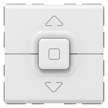 Description: Mosaic poussoir de volets roulants - 500 W maxi - 2 modules - blanc - enjoliveur finition blanc