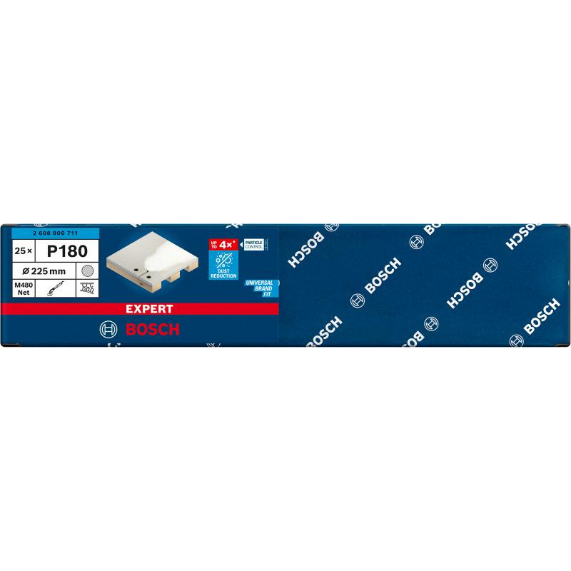 Emballage: 25Marque: BoschRéférence: 2608900711EAN: 4059952540498Description: EXPERT Abrasif M480 Best for Wood and Paint, diamètre 225 mm, grain 180, 25x