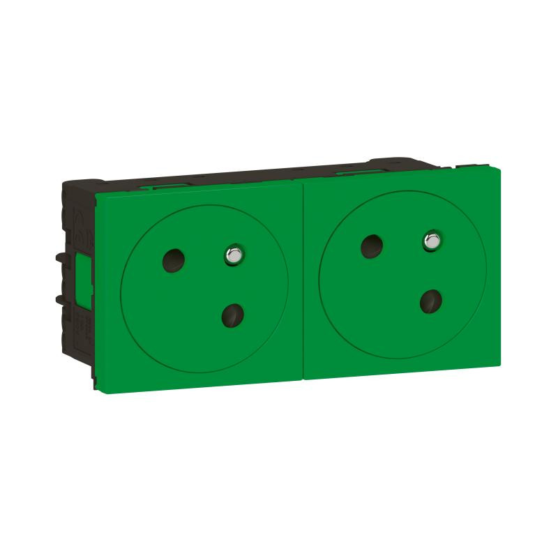 Emballage: 10 - 120 - 960 Marque: LegrandRéférence: 077162LEAN: 3414971576681Description: Mosaic Link prise 2x2P+T affleurante 45°-4 modules vert