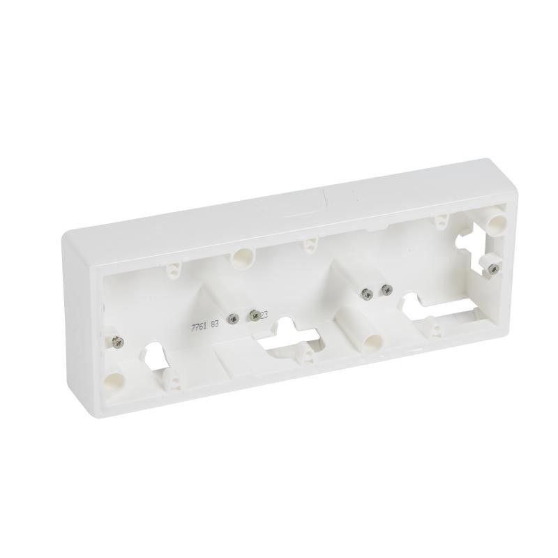 Emballage: 1 - 10 - 300 Marque: LegrandRéférence: 776183EAN: 3245067761830Description: Val cadre saillie pour 3 mécanismes - blanc