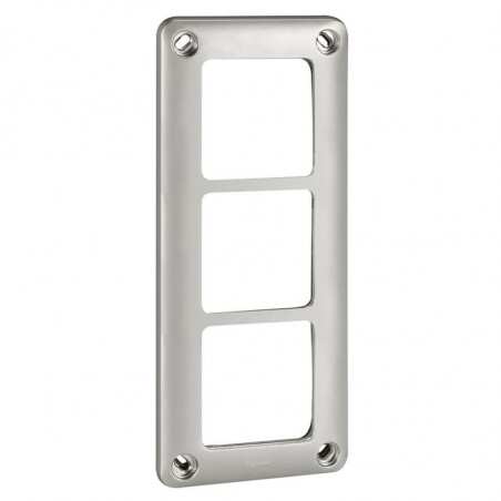 Emballage: 1 - 10 - 100 Marque: LegrandRéférence: 077853EAN: 3245060778538Description: Soliroc plaque 3 postes entraxe 71mm - IP55 - IK10