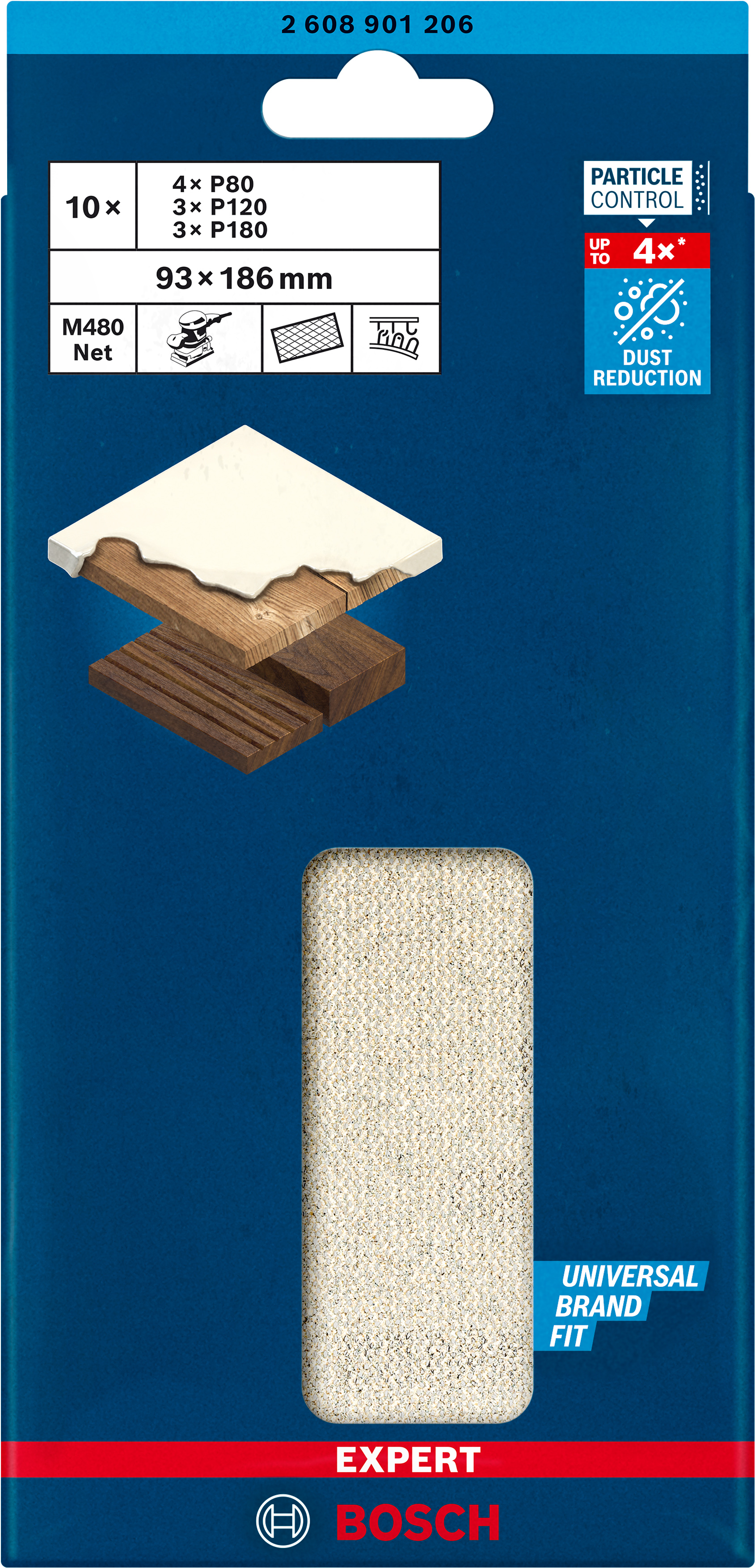 Description: EXPERT Set 10-pièces Abrasif M480 Best for Wood and Paint, 93 x 186 mm, grain 80/120/180