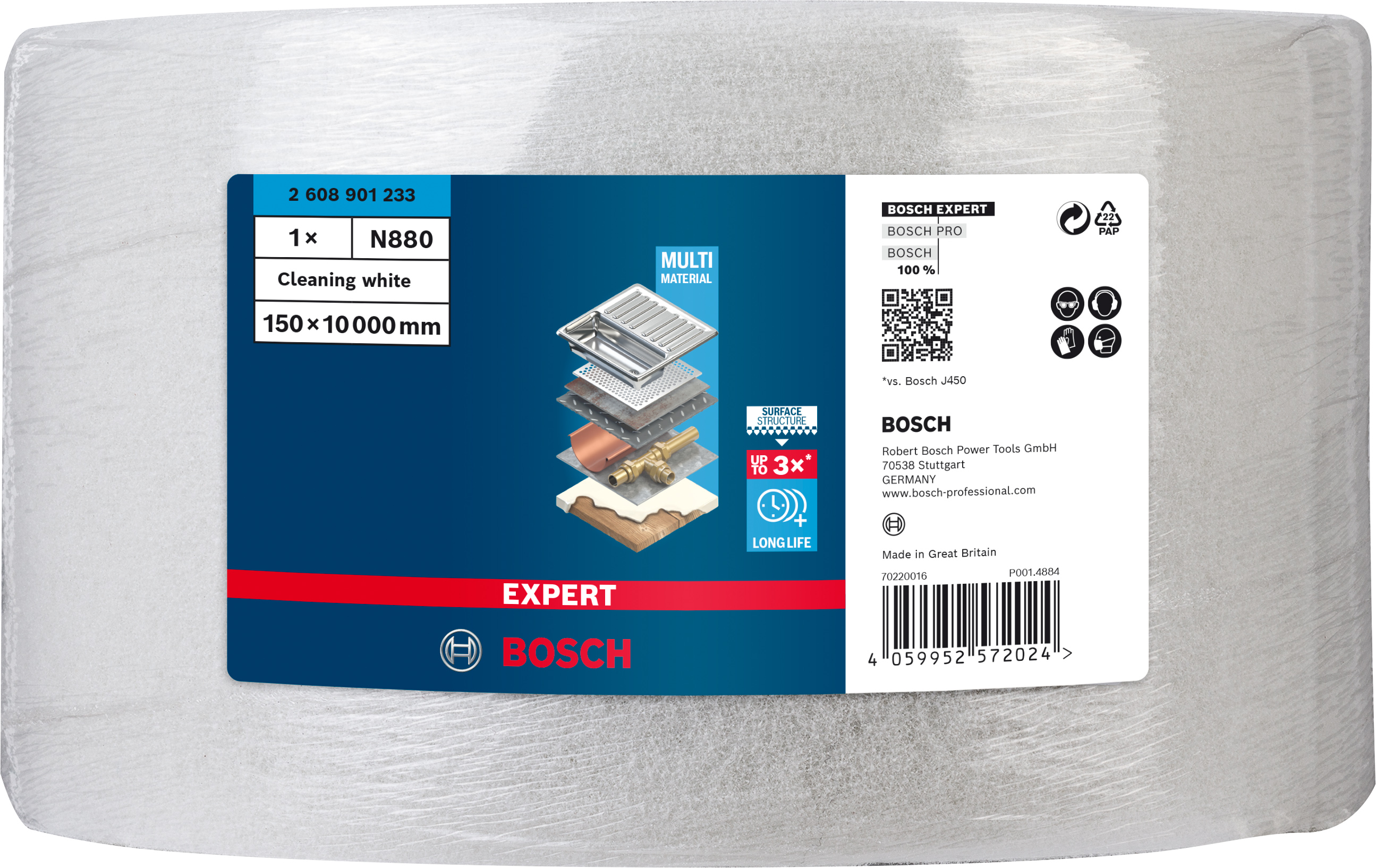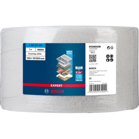 Emballage: 1Marque: BoschRéférence: 2608901233EAN: 4059952572024Description: EXPERT Rouleau de nettoyage non-tissé, 150 mm x 10 m