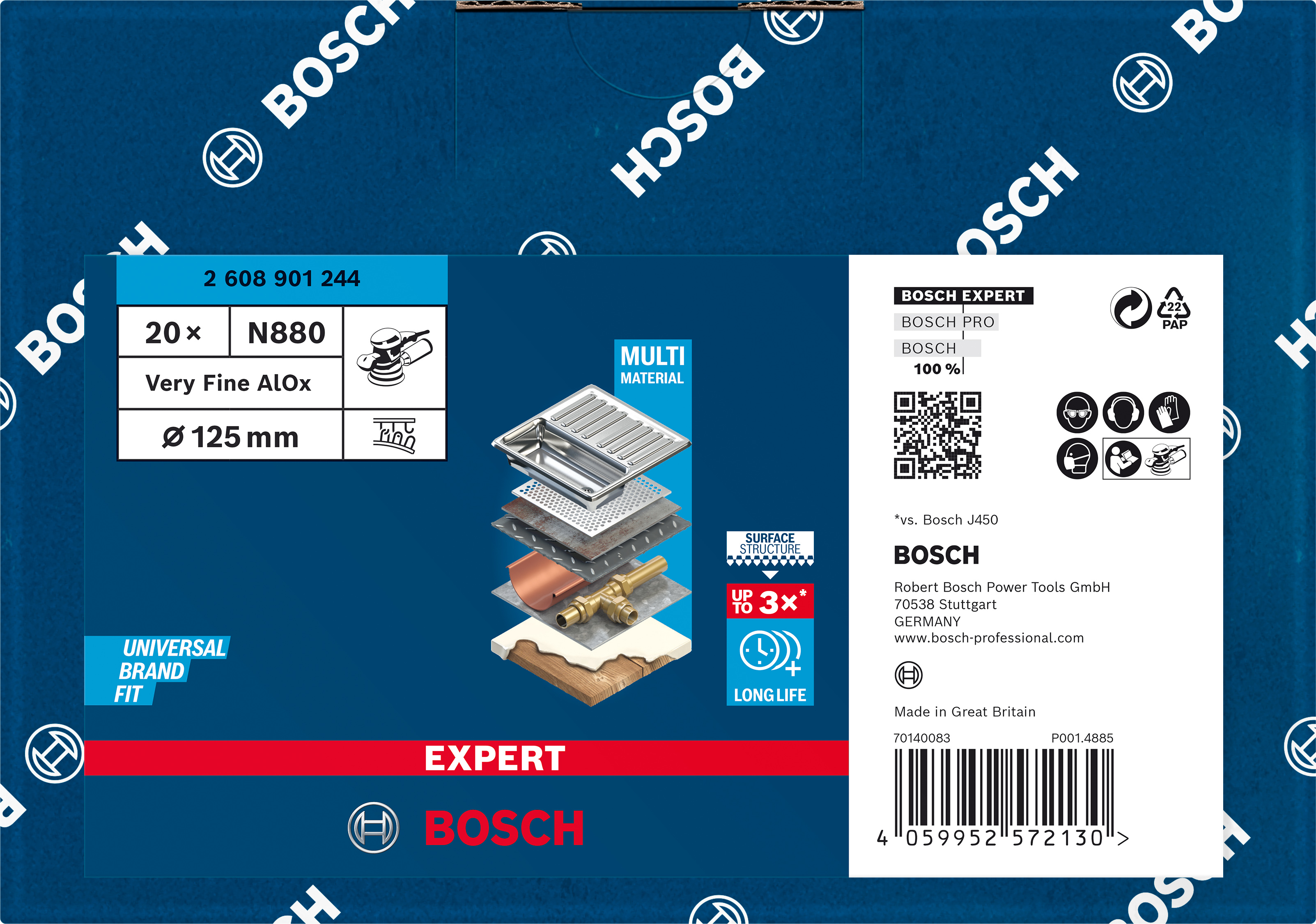 Emballage: 1Marque: BoschRéférence: 2608901244EAN: 4059952572130Description: EXPERT Disque non-tissé, very fine A, 125 mm