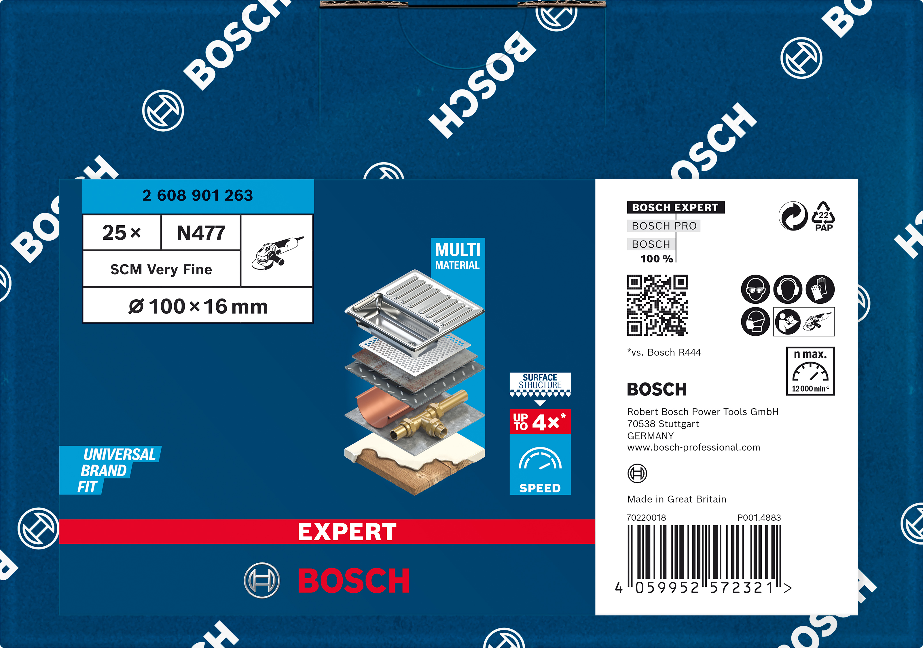 Emballage: 1Marque: BoschRéférence: 2608901263EAN: 4059952572321Description: EXPERT Disque sur non-tissé SCM très fin 100 mm