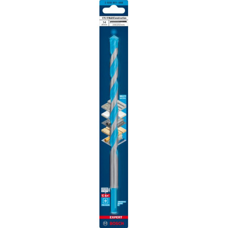 Emballage: 1 Marque: Bosch Référence: 2608901488 EAN: 4059952596570 Description: EXPERT Foret polyvalent CYL-9 Multi Construction, 14 x 200 x 250 mm, D10 mm