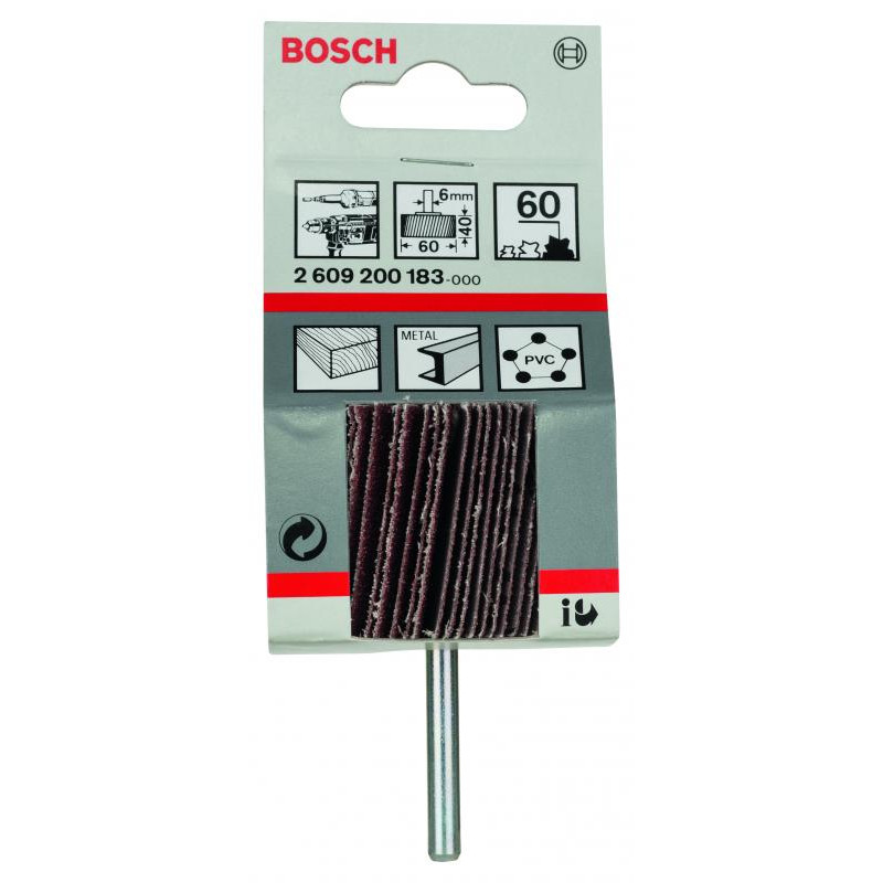 Emballage: 1Marque: BoschRéférence: 2609200183EAN: 3165140076791Description: Rouleau à lamelles 6 x 60 x 40 mm, G60