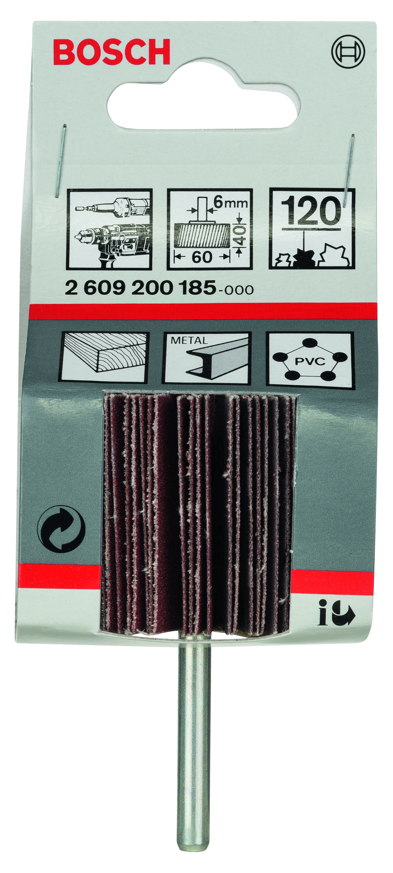 Emballage: 1Marque: BoschRéférence: 2609200185EAN: 3165140076807Description: Rouleau à lamelles 6 x 60 x 40 mm, G120