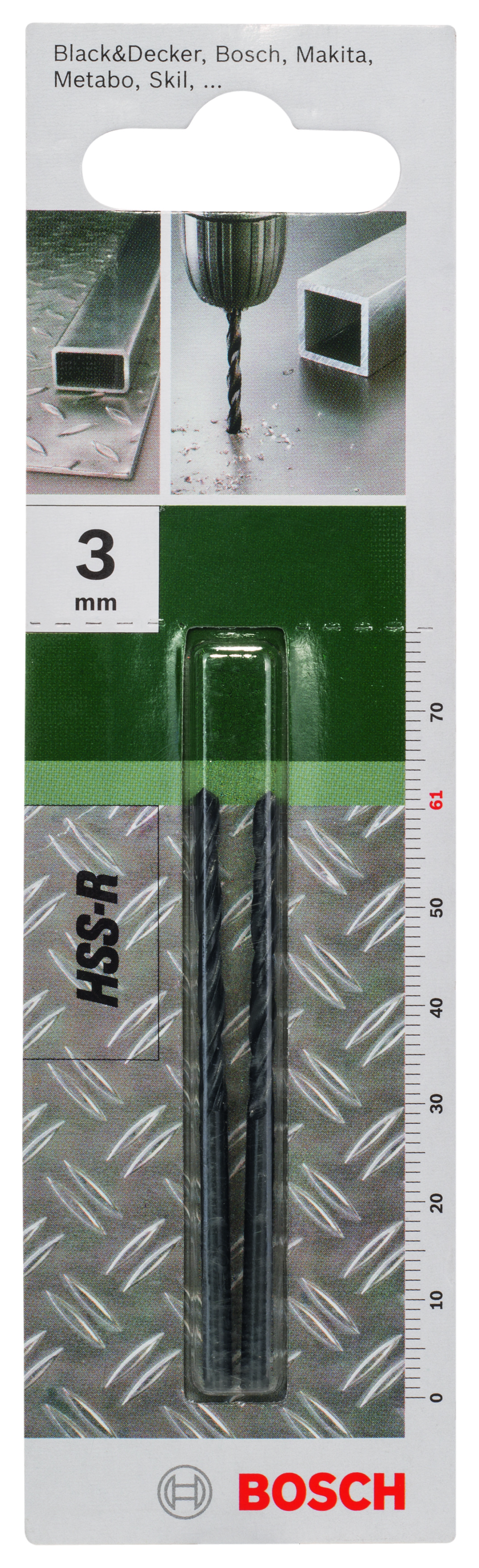 Emballage: 2Marque: BoschRéférence: 2609255004EAN: 3165140406864Description: FORETS MP (FORET A MÉTAUX HSS-R 3X33X61MM HÉLICE118 (2))