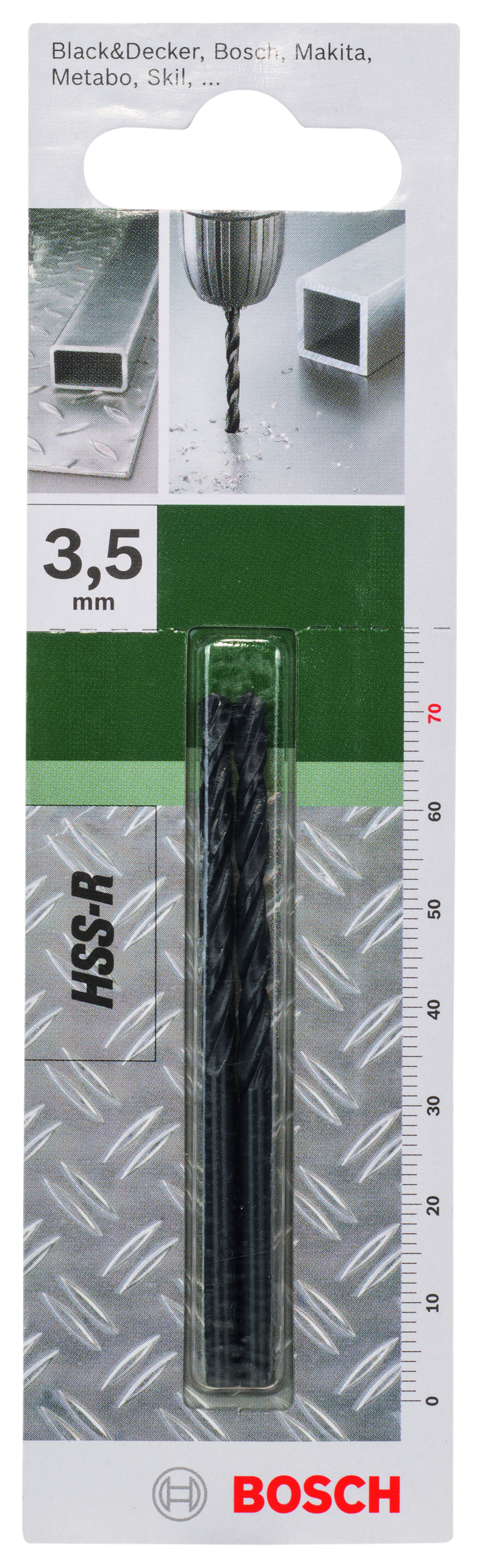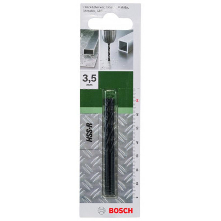 Emballage: 2Marque: BoschRéférence: 2609255006EAN: 3165140406888Description: FORETS MP (FORET A MÉTAUX HSS-R 3.5X39X70MM HÉLICE118 (2))