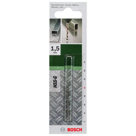 Emballage: 2Marque: BoschRéférence: 2609255035EAN: 3165140407175Description: FORETS MP (FORET A MÉTAUX HSS-G 1.5X18X40MM HÉLICE118 (2))