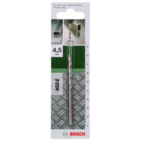 Emballage: 1Marque: BoschRéférence: 2609255043EAN: 3165140382298Description: FORETS MP (FORET A MÉTAUX HSS-G 4.5X47X80MM HÉLICE118 (1))