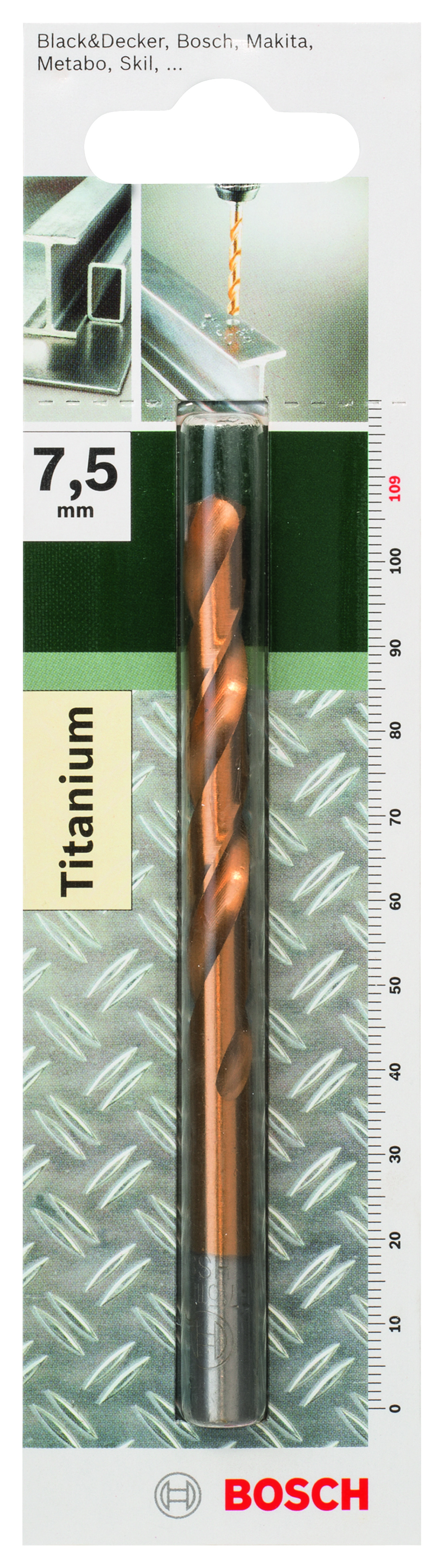 Emballage: 1Marque: BoschRéférence: 2609255104EAN: 3165140382908Description: FORETS MP (FORET A MÉTAUX HSS-TIN 7.5X69X109MM HÉLICE118 (1))