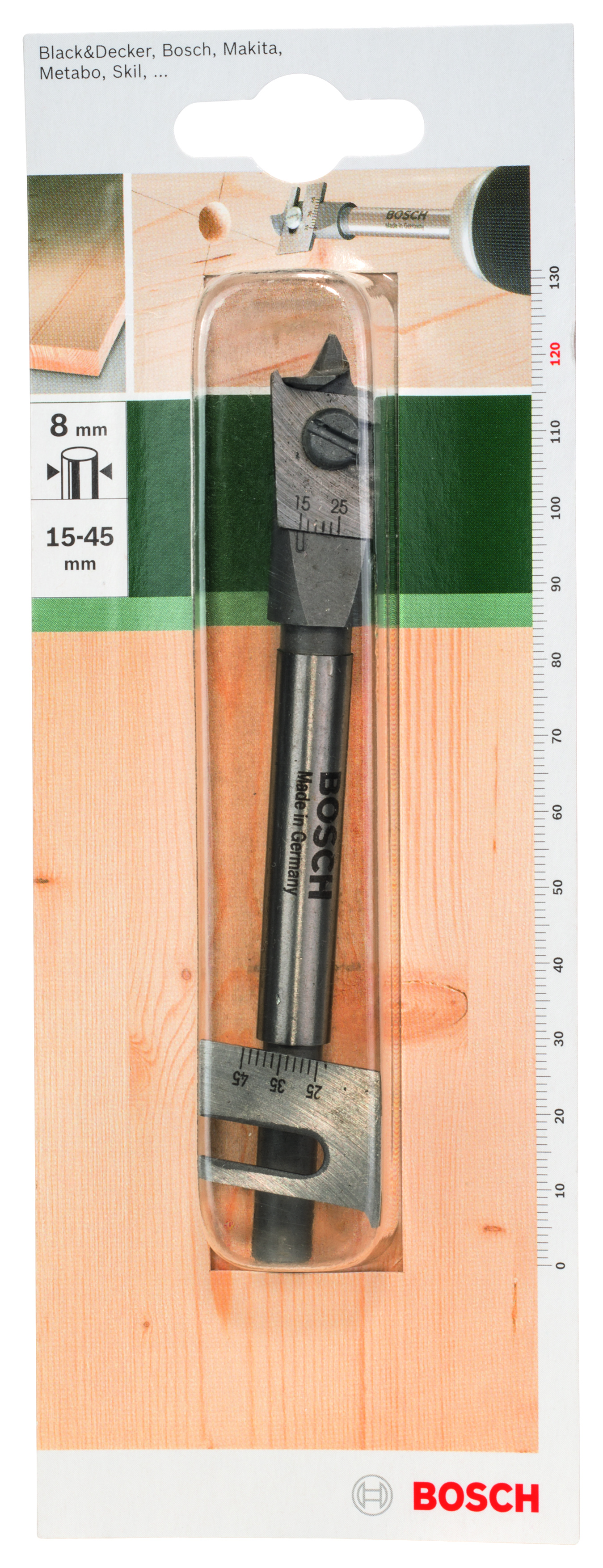 Emballage: 1Marque: BoschRéférence: 2609255277EAN: 3165140383929Description: FORETS MP (AJUSTABLE MÈCHE A BOIS PLATES 15-40X120MM (1))