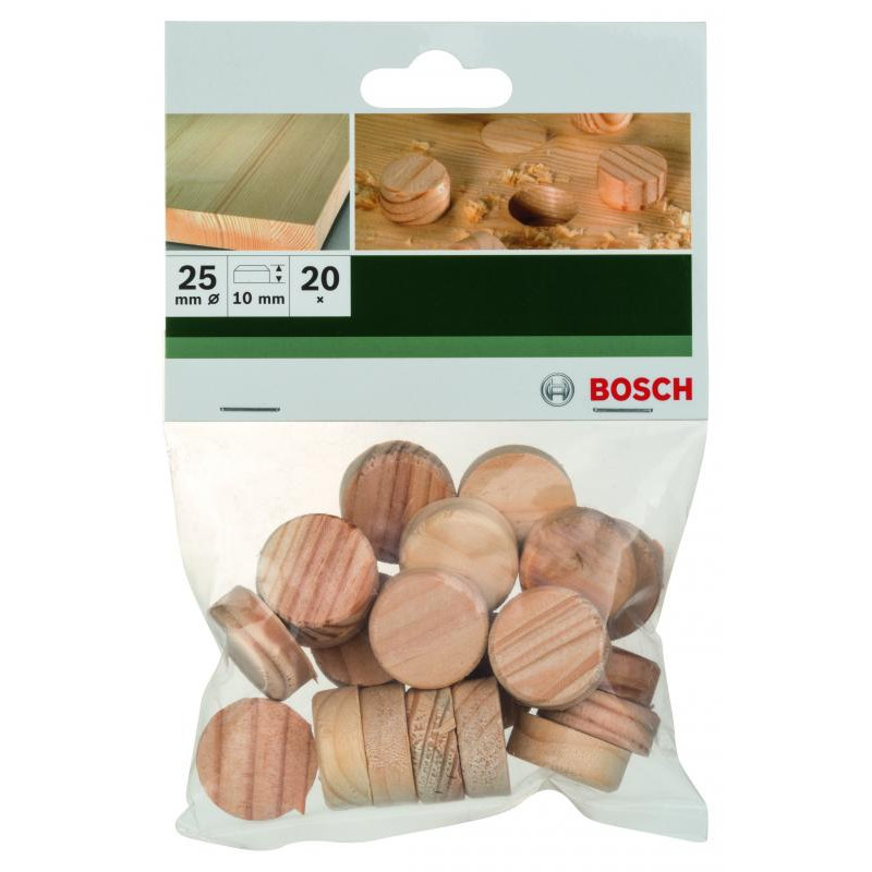 Emballage: 20Marque: BoschRéférence: 2609255322EAN: 3165140384377Description: FORETS MP (BOUCHONS EN BOIS 25X10MM (20))