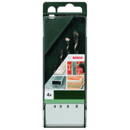 Emballage: 4Marque: BoschRéférence: 2609255480EAN: 3165140385220Description: FORETS MP (SET FORETS POLYVALENTS 4X75 - 5X85 - 6X100 - 8X120MM (4))