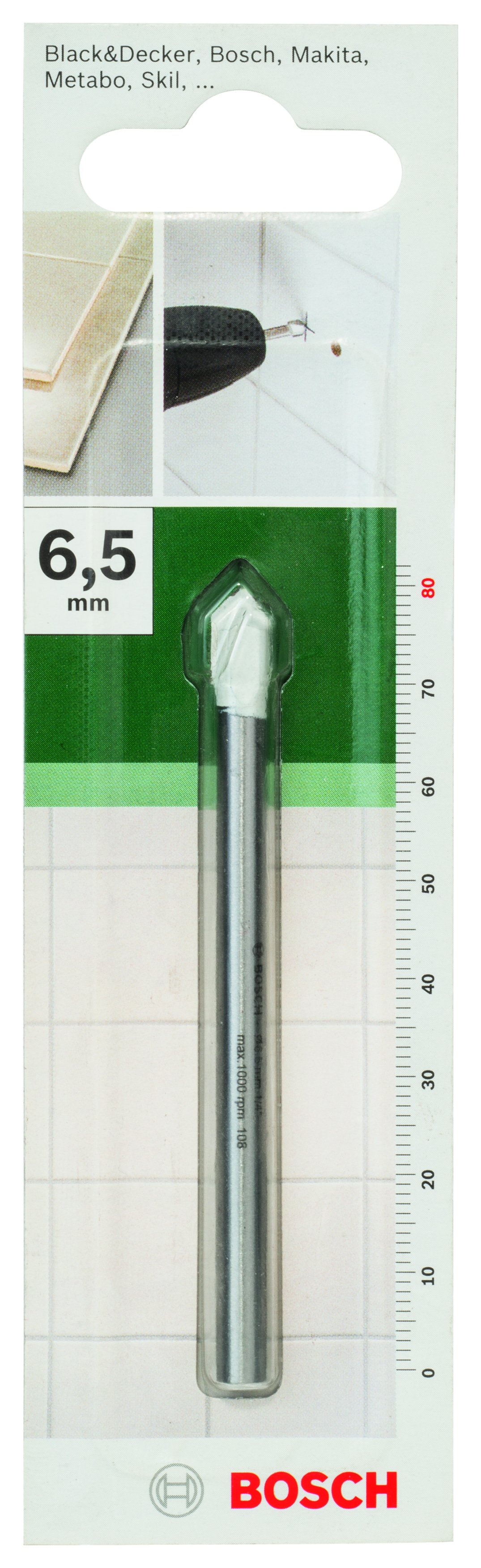 Emballage: 1Marque: BoschRéférence: 2609255581EAN: 3165140412278Description: FORETS MP (FORET A VERRE EXPERT Ø6.5 X 80 MM)