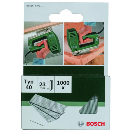 Emballage: 1000Marque: BoschRéférence: 2609255806EAN: 3165140392570Description: CLOUS MP (POINTE 40 23MM (1000))