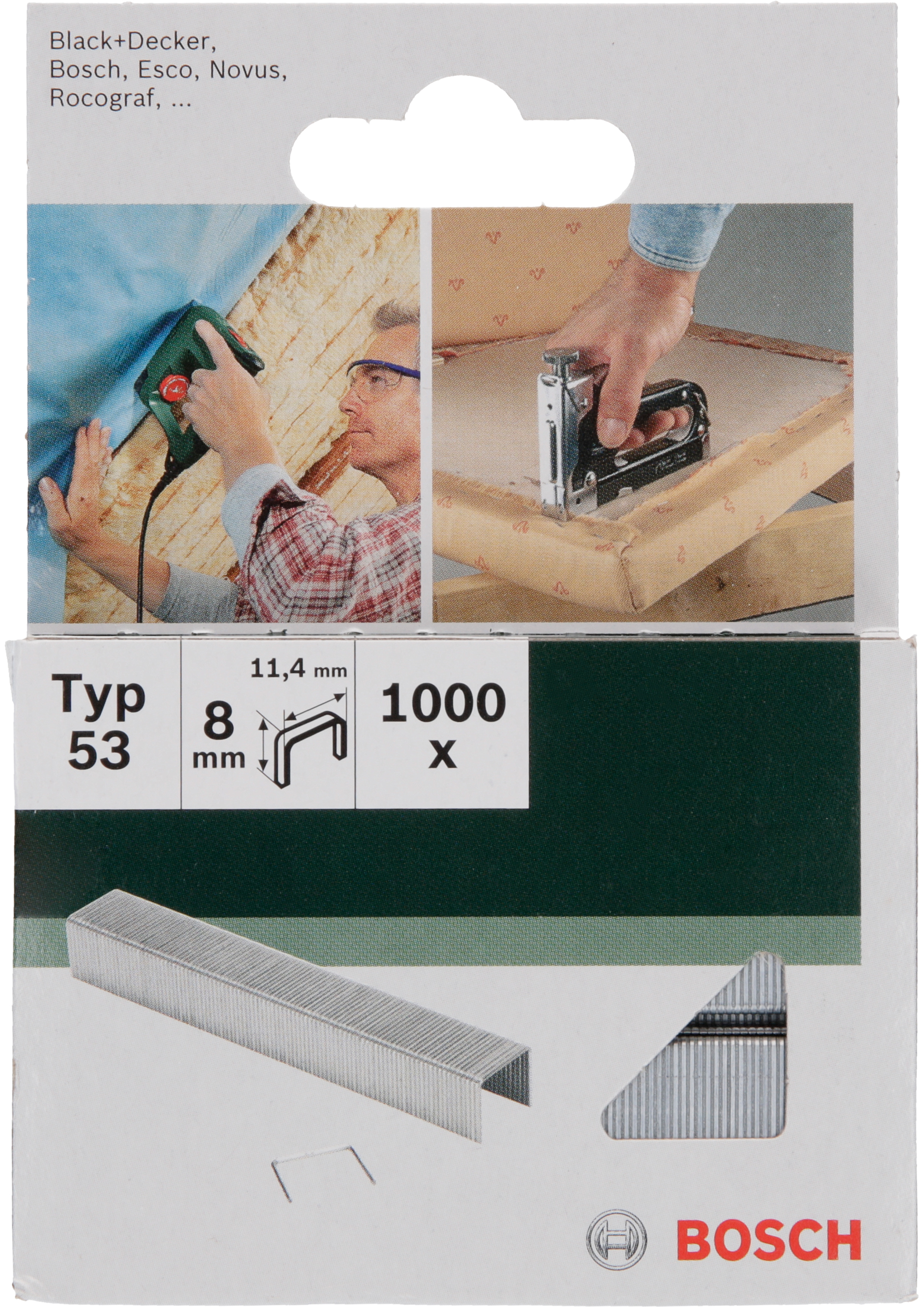 Emballage: 1000Marque: BoschRéférence: 2609255820EAN: 3165140392716Description: CLOUS MP (AGRAFES 53 11.4X0.74X8MM (1000))