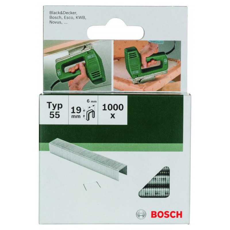Emballage: 1Marque: BoschRéférence: 2609255828EAN: 3165140392792Description: CLOUS MP (AGRAFES 55 6X1.08X19MM (1000))