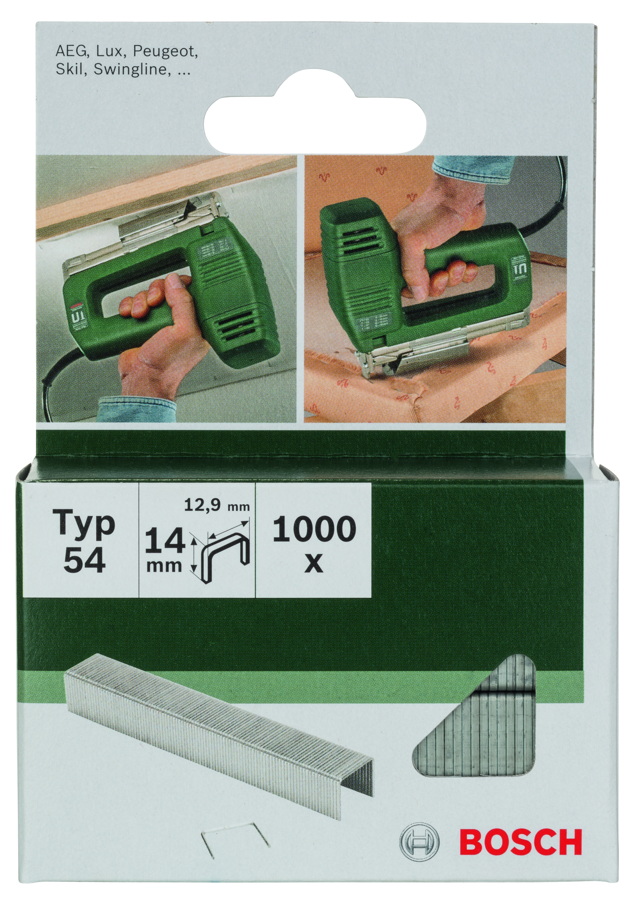 Emballage: 1000Marque: BoschRéférence: 2609255843EAN: 3165140392945Description: CLOUS MP (AGRAFES 54 12.9X1.25X14MM (1000))