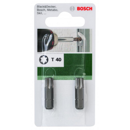 Emballage: 2Marque: BoschRéférence: 2609255938EAN: 3165140390071Description: EMBOUTS MP (EMBOUT T40 25MM, 1/4'' A QUEUE A SIX PANS , STANDARD (2))